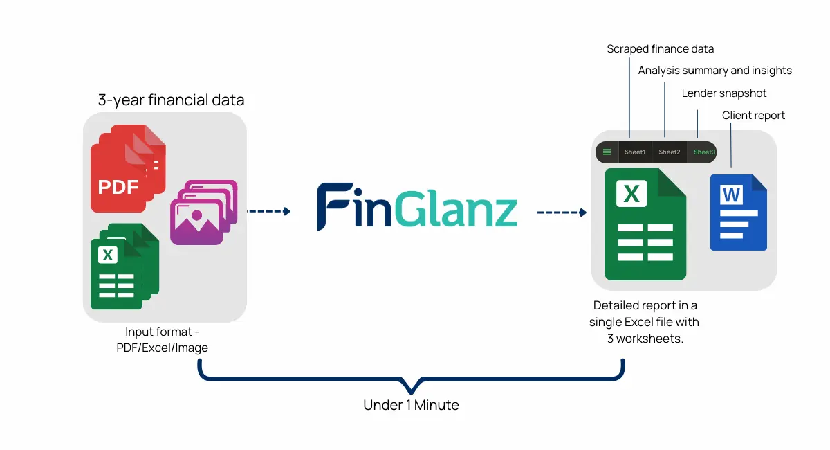 FinGlanz extracts and analyses the data using AI then generates a detailed report